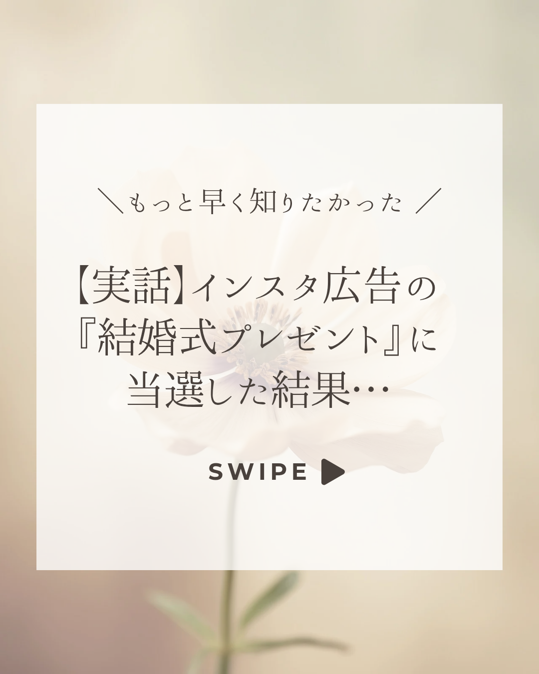 この記事では、実際にインスタ広告のキャンペーンに当選し、式場と契約した私が、以下のことを包み隠さず暴露します。